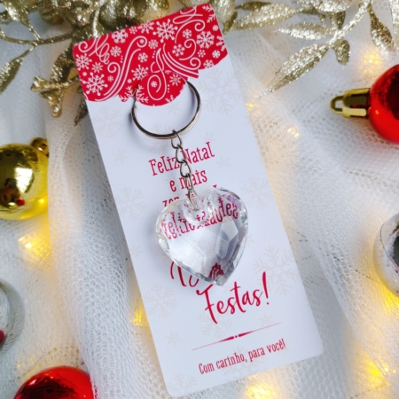 • CARTÃO COM CHAVEIRO DE CORAÇÃO ACRÍLICO | FIM DE ANO