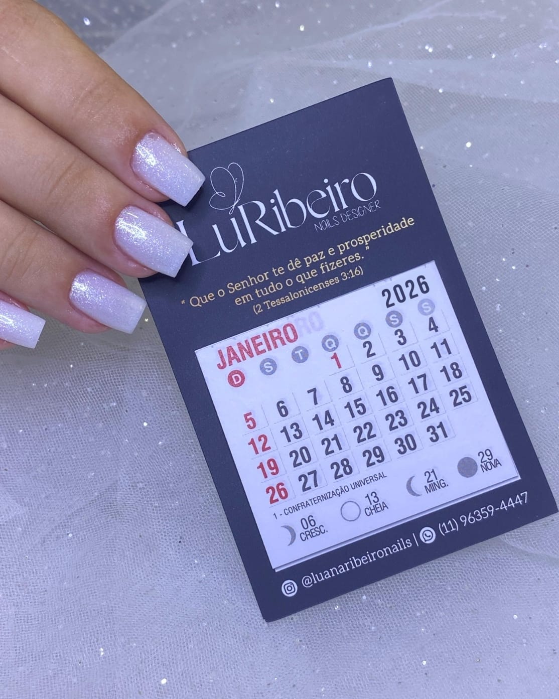 - Cartão personalizado com informações de preferência do cliente. Pode incluir logotipo, contatos, frase, versículo, QR code ... etc.