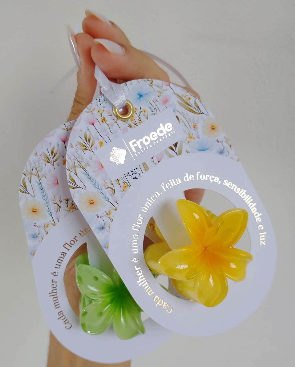 O Cartão Presente Flor para Cabelo já acompanha a piranha em lindas cores sortidas, um mimo delicado que encanta e celebra todas as mulheres presenteadas!